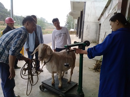本站讯 9月23日,贵州德江县平原镇坳田村波尔山羊养殖户用机器秤称羊,山羊“上称”稳稳地站在机器磅秤的秤盘里。据坳田村支书介绍,该村有3家山羊养殖大户, 每家均为80余只羊,此外还有20余家小型养殖户,山羊共有500余只。据统计,平原镇扶贫项目养羊户的共有65家,肉牛养殖大户共有800余户,在稳定 年出栏肉牛1.1万头的基础上,总产值突破1亿元。(张月强)