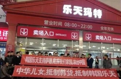 2016年5月,由于韩国布置萨德导弹,选址在乐天集团旗下的一个高尔夫球场里,由此掀起了抵制韩货,抵制乐天。由此乐天不得不转让,退出中国。由此,韩国三星等等企业也受到影响,后来逐渐撤出中国。