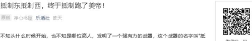 不知从什么时候开始,也不知是哪位高人,发明了一个强有力的武器,这个武器的名字叫“抵制”。于是乎,每逢与外国发生龉龌,便频频使出这个杀手锏,那真可谓是所向披靡,战无不胜,攻无不克。这不,美帝,小日本,在小粉红们猛烈地攻击下,终于要夹着尾巴逃跑了。