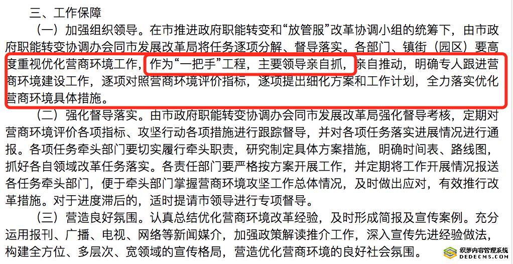 其中,“东莞市争创一流营商环境攻坚行动方案(2021)”有三个方面:第一,任务目标;第二,工作措施;第三,工作保障。