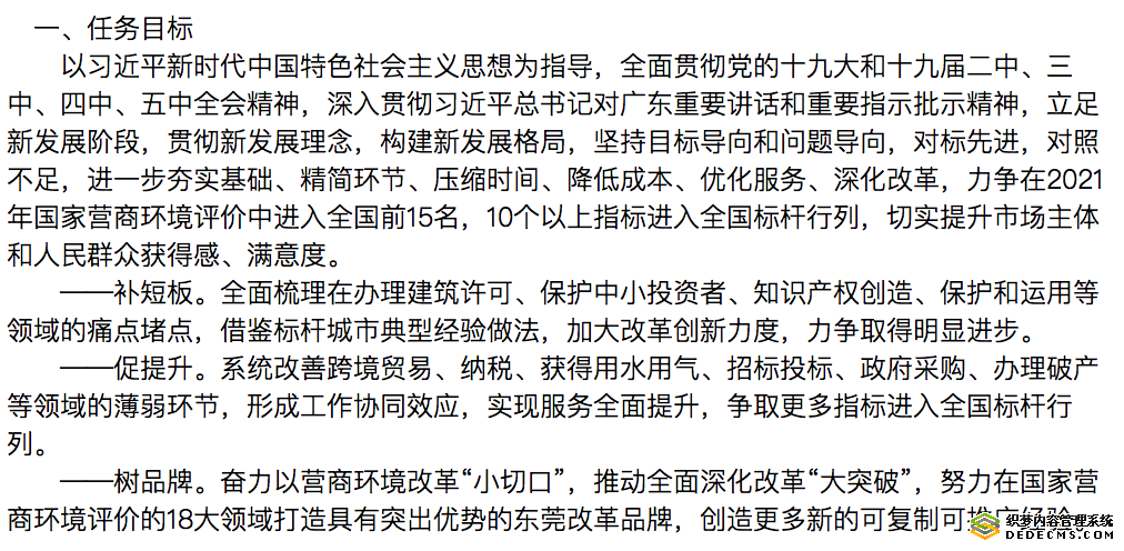 上图为“东莞市争创一流营商环境攻坚行动方案(2021)”之任务目标
