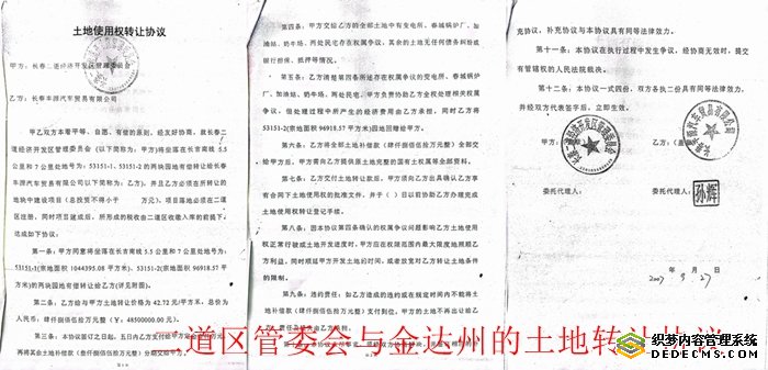 2007年9月27日,二道经济开发区管委会还没从工大手里购买果树场及锅炉厂土地的前二天,便凭空臆想将原绿园区果树场及锅炉厂土地(没有经过招、拍、挂)私下以每平方米42.72元总价4850万元卖给长春丰源汽车贸易有限公司(注:金达州)做驾校用地。此次交易二道经开管委会获得回赠9万多平方米、价值1000多万元的另一块土地。其买卖合同中也写明交易土地跟春城锅炉厂等多家土地有争议,争议由二道区政府解决。十多年来,锅炉厂多次找二道区政府解决争议纠纷未果,问题没解决反而遭来了二道区英俊镇城管们的百般骚扰和侵害。锅炉厂院内彩钢库房先被强拆,耕地多次被城管用垃圾强行填埋等等。而更奇葩的是,长春二道经济开发区管委会的土地买卖违反了最高法《关于国有土地使用权合同纠纷案件的司法解释》【2005】5号文件第二条,开发区管委会作为出让方和受让方签订的土地使用权转让合同应当认定为无效。此案至今仍然无人监管。