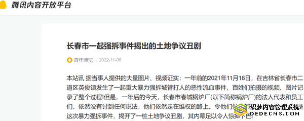 本站讯 据当事人提供的大量图片、视频证实:一年前的2021年11月18日,在吉林省长春市二道区英俊镇发生了一起重大暴力强拆城管打人的恶性流血事件,百姓们拍摄的视频、图片记录了整个过程!但是,一年后的今天,长春市春城锅炉厂(以下简称锅炉厂)的法人代表和员工们,依然没有讨到任何说法,他们依然走在维权的路上。令他们做梦都没有想到的是,正是这次暴力强拆事件,揭开了一桩土地争议丑剧,其内幕足以令人惊掉下巴!