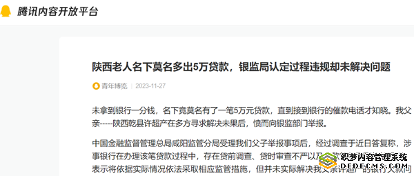 未拿到银行一分钱,名下竟莫名有了一笔5万元贷款,直到接到银行的催款电话才知晓。我父亲-----陕西乾县许超产在多方寻求解决未果后,愤而向银监部门举报。