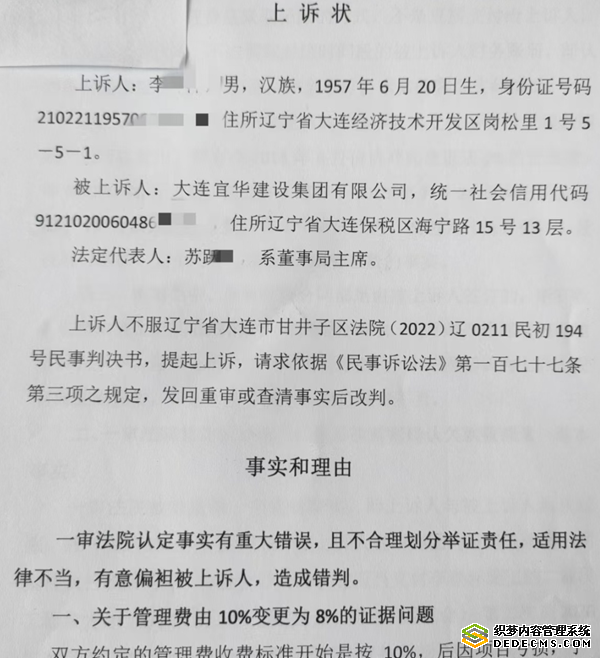 心还不死的李先生又上诉到大连市中级法院,这大连中院也维持了一审原判,没法,他只能将希望放在了辽宁省高级法院这里,这回,虽然案子还没有开庭审理,但他已信心满满。