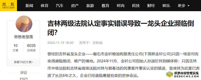曾经的吉林省龙头企业——磐石市金轩粮油有限责任公司(下简称金轩公司)只因一场官司而变得濒临倒闭、破产的境地。2024年11月,金轩公司创始人孙淑珍找到媒体称:只因吉林市中级法院和吉林省高级法院对其与郭春洁的民事案件事实认定的错误,致使其为此案已奔波了长达6年之久,企业已经面临着被拍卖的悲惨命运。