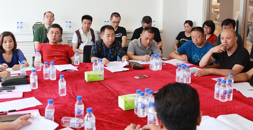 图2为验收组在工程验收之前听取项目副经理兼总工程师唐崧(左三)汇报工程施工管理等情况。