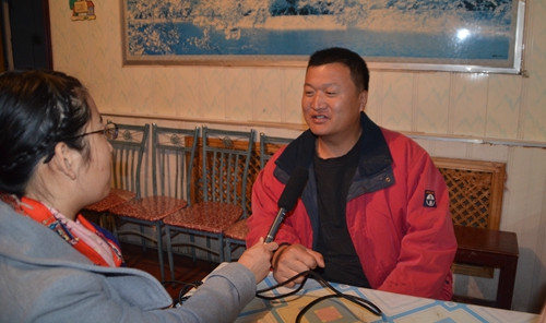 图2为内蒙古甘河农场一队职工牟国安听完农场党委书记解仁祖报告后接受记者采访。(周旭友摄)