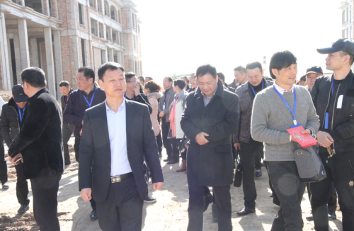 陕西建翔万兴实业有限公司总经理任建科在项目现场向浙江温州个体企业家协会副会长叶永国现场介绍有关进展情况