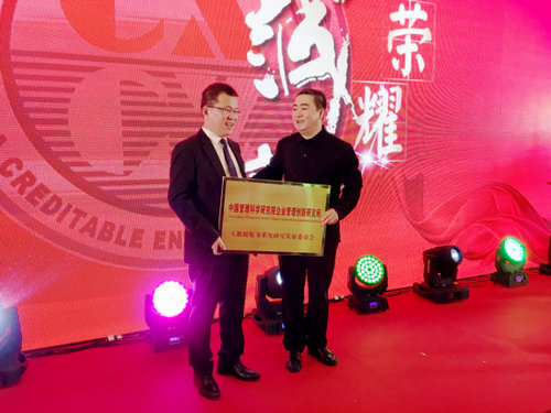 为天津蓝天格锐董事长任江涛(右二)及多家诚信企业颁发感谢状