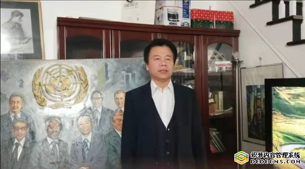 全球艺术家联盟主席联合国文化和平大使姚继辰先生在美国纽约联合国所在地视频祝贺。