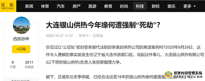 你见过以“公证处”密封签条替代法院封条查封供热公司的离谱案例吗?2025年9月29日,这件令人费解的事实就发生在辽宁省大连市旅顺口区。说起这件事儿,大连银山供热有限公司(以下简称银山供热)负责人张丽卿据理力争。