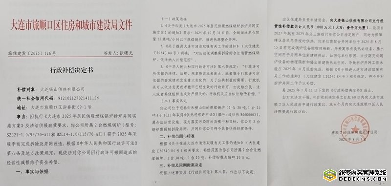 早在今年7月11日,大连市旅顺口区住房和城市建设局(以下简称:住建局)印发的《撤销供热行政许可决定书》和《行政补偿决定书》两份红头文件邮寄给银山供热。住建局自知行政行为涉嫌违法,在文件下发时隔20天,即:8月1日,又对银山供热下发了“拟撤回《供热经营许可证》决定告知书”。而这仅仅是闹剧的开局,之后,随着银山供热负责人张丽卿实名向巡视组递交“住建局行政乱作为”的投诉信以后,各种“行政干预”如山雨来临的节奏降临在银山供热头上。