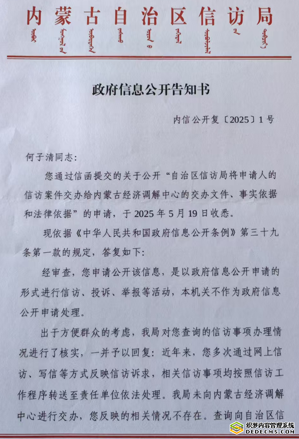 内蒙古住建厅甩锅自然资源厅和发改委:“不属我管。”内蒙古财政厅、自然资源厅踢回旗级:“问旗自然资源局。”鄂尔多斯市住建局、发改委推诿:“信息不掌握,找旗部门。”伊金霍洛旗政府仅转交申请给自然资源局,再无下文。这种层级推诿,赤裸裸暴露了行政体系的失灵与傲慢。