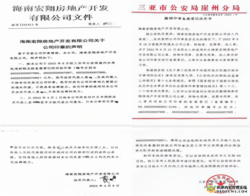 本站讯 在商业社会的舞台上,公司本应是有序运转、追求发展的主体,然而海南宏翔房地产开发有限公司(以下简称“宏翔公司”)却陷入了一场错综复杂的“乱局”,虚假诉讼、假证风波以及旷日持久的“公章之争”,让这家公司千疮百孔,也引发了各方的广泛关注。