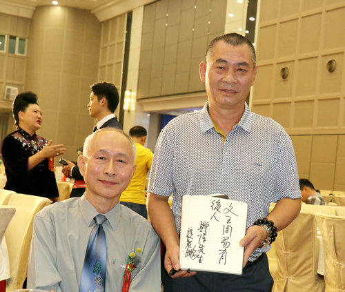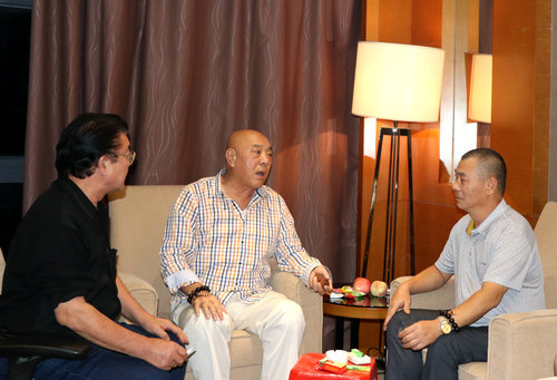 陈业庭与著名表演艺术家、西游记沙僧扮演者刘大刚在一起亲切交流
