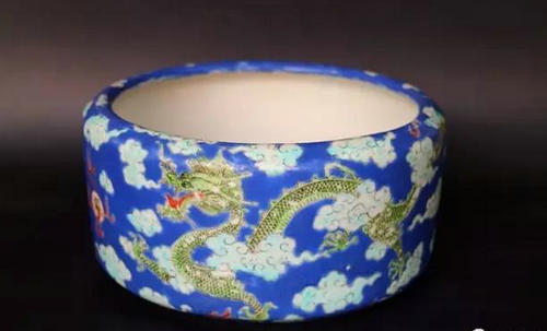 阮先生在内蒙古考察期间,我们不仅一起走访藏家,逛古玩店,也光顾当地的古玩地摊。有一次在市场上偶遇一南方人摆摊,卖的都是瓷器。当地人对他的东西非常冷落,几乎无人问津。当被我们看到后,阮先生的眼睛立刻亮了起来,且神情异常的激动。他指着摊上的瓷器对我说,“这些都是真东西,如果价格合适,一定要把它买下来”。经过讨价还价,我从这个人手里买下了一对粉彩花卉帽筒和一只粉彩龙纹笔洗(见图9)。后来还与这个人交了朋友,来年又在阮老师的指导下,有从他手里买过几件瓷器。如清代青花开光花卉方棒槌瓶、民国陶陶斋款的粉彩印泥盒(见图10)和一件清代粉彩椎把瓶(见图11),从而为我的古瓷器收藏打下了一定的基础。