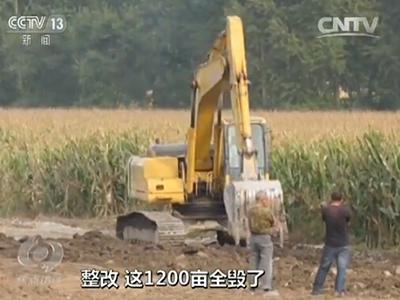 十几倍的利润,恐怕就是哈尔滨水投公司违法取土的动力。据了解,2014年4月,经国家土地督察沈阳局着手处理,确认该处土地存在753500平米基 本农田遭到破坏,违反了土地法的相关规定。国家土地督察沈阳局提出处理意见,一方面要依法追究相关人员责任,另一方面立即对遭到破坏的农田进行恢复。这本 来是亡羊补牢的好措施,没想到这样的措施落实时又出现新问题:“原先是毁灭300亩,完了之后恢复,恢复的时候把那个好土,900亩的好土推到坑里了,把 这个坑填上了,整个这个地现在都不能种了。”