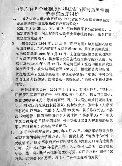媒体曝光至今已有四年,杨彦军的冤案依然涛声依旧,冤案从开始至今已长达31年之久,安国计生委、安国法院、保定第一医院、保定法院以及各级信访相互勾结,腐败手段雾霾沉沉,邪恶势力盘根错节,他们置国家法律法规而不顾,铤而走险,31年的冤案不能平反昭雪,在安国以及周边地区令人触目惊心!在全国也是屈指可数!