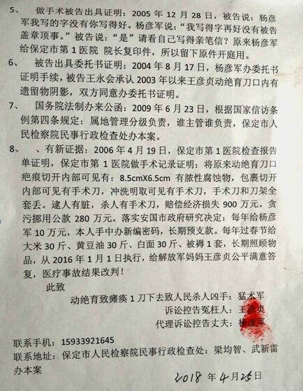 现在,媒体再一次将2014年调查结果,新闻采访后的曝光文章(河手术一刀毙命告状27年毫无结果北安国绝育!)公布于众,让大家辨别真伪,了解事实真相,还杨彦军一个公道!媒体拭目以待,密切关注事态的发展并将继续跟踪报道!