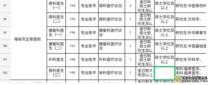 2021年就这样过去了,在2022年的“海城市事业单位公开招聘岗位信息”表中,正骨医院同样地保留着专科起点的“骨科医疗诊治”岗位,这回,苏长庚考上了。