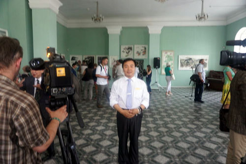 在白俄罗斯文化交流期间,我国著名画家敖特随中国书画艺术家代表团还应邀出席白俄罗斯国际斯拉夫节的开幕式仪式,并受到白俄罗斯国际斯拉夫节的领导,独联体艺术家联盟主席雷格尔以及各界人士的亲切接见。