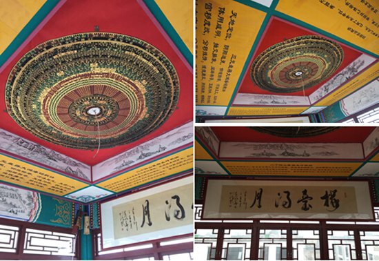 一亩园的题名和内部装饰亦是考究。园子中建筑的命名如鹅步梁、泮水桥、苏竹图、问天阁、云山、尔海等均出自诗词典故,具有深厚的文化内涵和寓意。园中问天 阁的外墙装饰为《易经》的八卦卦象,内饰用中国最大的罗盘作为藻井,周边是罗盘歌诀和著名的风水名城、风水名村。中国建筑文化研究会建筑堪舆专业委员会将 在此挂牌,以此为基地,破解风水中的科学奥秘。