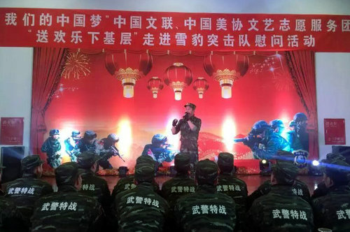 中国产业经济信息网财经频道(记者:许顺喜)报道,2016年1月13日,由中国文联、中国美协文艺志愿服务团组织“送欢乐 下基层”走进雪豹突击队慰问活动在中国武警特战总队顺利举行。我国著名军旅歌唱家金波应邀出席本次慰问活动。