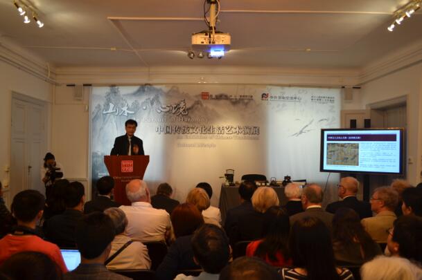 中国国家艺术网讯:当地时间5月25日下午,由斯德哥尔摩中国文化中心、中外文化交流中心和吴作人国际美术基金会青年策展人专项基金共同主办,中央美术学院艺术管理与教育学院、天津沉香艺术博物馆和北京楚和听香服装服饰有限公司共同支持的“山水•心境——中国传统文化生活艺术演展”活动在斯德哥尔摩中国文化中心开幕。中国驻瑞典大使陈育明和夫人白晓梅参赞,瑞典著名导演斯塔方,著名艺术设计大师莫妮卡,斯德哥尔摩市议员、斯得哥尔摩文化节艺术总监杨•卡尔松,瑞典戏剧专家聂克玲,瑞典前驻华大使荣格伦,瑞典著名雕塑家汉斯•文纽斯等瑞典各界人士百余人出席了开幕活动。中国驻瑞典使馆文化参赞兼斯德哥尔摩中国文化中心主任浦正东主持活动并致辞。