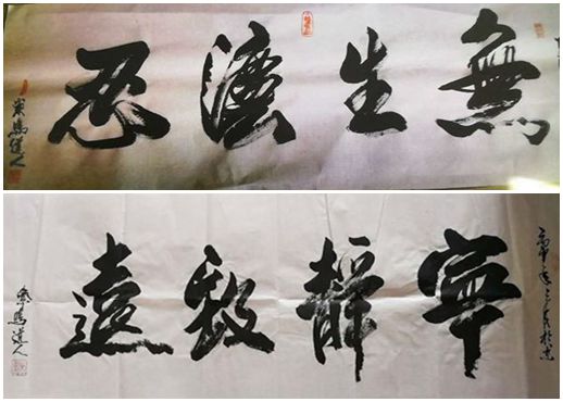 紫鸣道人讲完,便将几幅近期作品展示给大家,并请求指导。当在场的书画界名家,看过紫鸣道人的作品后,异口同声地说:“字中有画、形神兼备、秒笔生辉、活灵活现、栩栩如生,已达独到境界。”