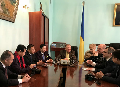 中国乌克兰文化商务代表团第三站,也是最为隆重的一站。在乌克兰国家文化部前部长库乐尼亚克的精心安排下,代表团一行有幸受到乌中协会荣誉主席、乌克兰首任总统克拉夫丘克的亲切接见。