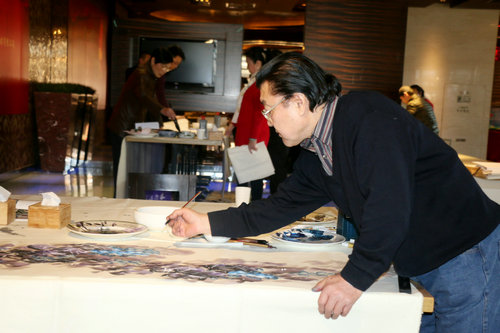 清华大学美术学院导师、著名画家王烨现场精心创作花鸟画作品