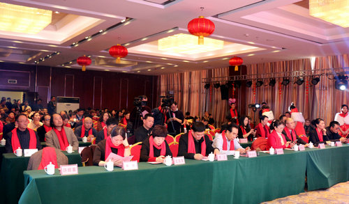 颁奖现场,解放军某高校原政委、中国艺术名家协会名誉主席林继福将军;河南省第九、十届政协常委、河南省人民政府参事肖继业;中国生产力促进中心协会新文化研究专业委员会副会长、太极玄鱼国画始创人、著名国学书画家程文鸣;北京大学教育文化与品牌战略研究所所长张芙蓉;中国艺海网国学书画艺术部主任、河南豫北书画院副院长、北京宣和书画艺术研究院高级研究员赵福;著名影视剧明星、主持人焦通及林州市委宣传部、林州市人大、林州市政协、来自全国各地的专家学者、歌手见证这一美好瞬间。(记者 史建芳 摄影 伍新永 郭海州)