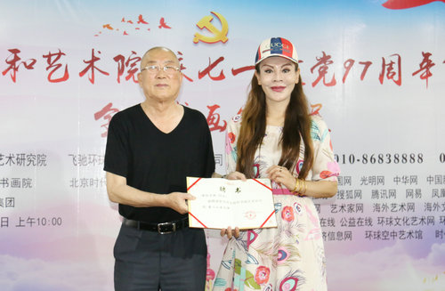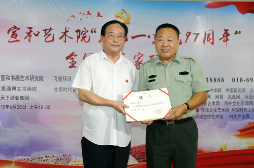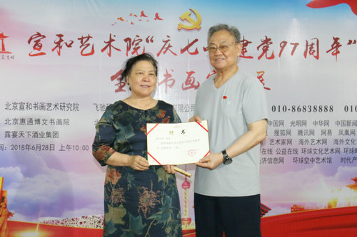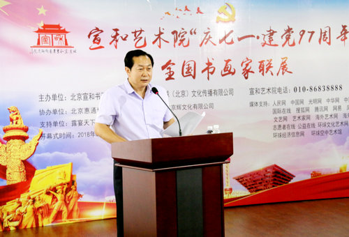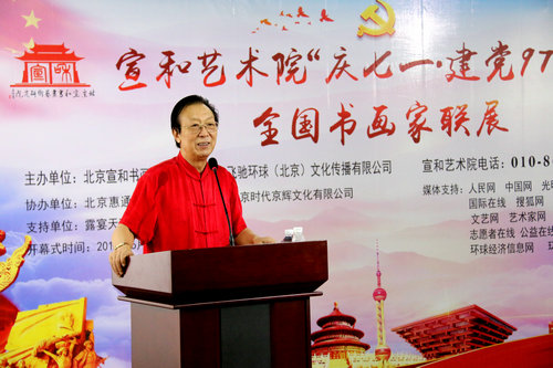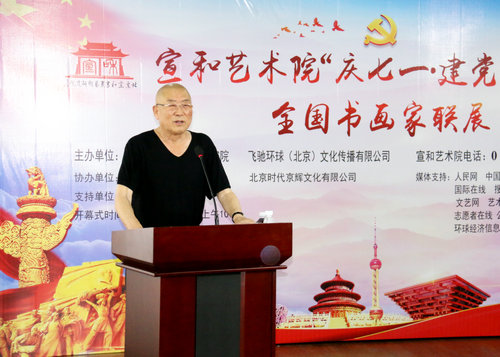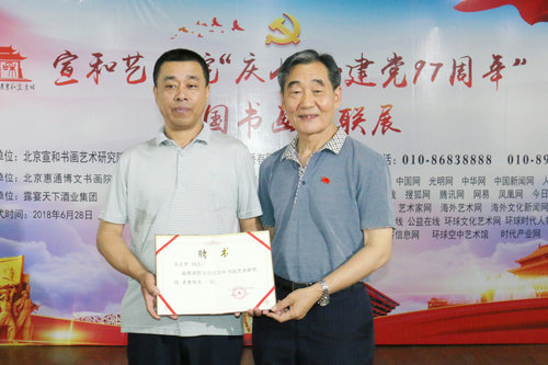 环球文化艺术网讯:书香诗韵歌盛世,翰墨浓情颂党恩。6月28日上午10时许,由北京宣和书画艺术研究院、飞驰环球(北京)文化传播有限公司主办;中共重庆市开州区红岩(北京)流动党员委员会、北京惠通博文书画院、北京时代京辉文化有限公司协办;露宴天下酒业集团大力支持的北京宣和书画艺术研究院“庆七一建党97周年”全国书画名家联展在北京举行。