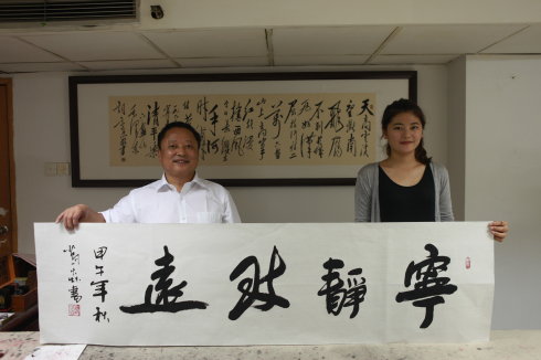 葛焱有自己的事业,担任着一家国企的负责人,书法不是他谋生的手段,完全是一种爱好和艺术追求,在别人眼里好像缺少一种“范儿”。“云卷云舒闲中望,人到无欲心自宽”,正是这种纯粹的对艺术的执着和追求,他的书法才会那么纯净高雅,飘洒俊逸。