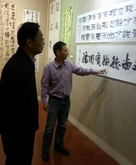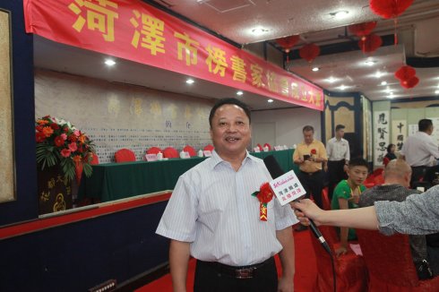 深秋时节,在地处菏泽市东部一家金融单位的菏泽市榜书家协会办公室,中国山东网书画名家记者对他进行了专访。