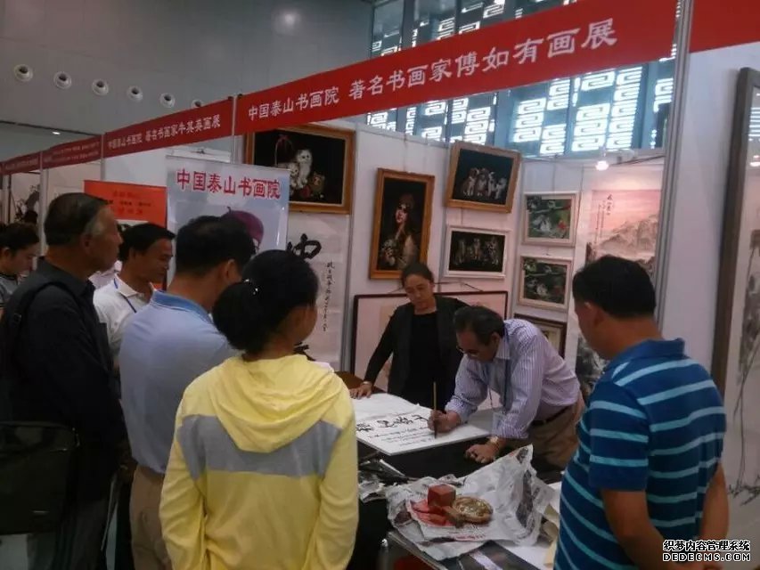 中国泰山书画院书画名家展暨首届泰山艺术品博览会于2015年9月20日圆满闭幕!历时三天的展览中共展出书画家作品680多幅,现场创作书画作品300 多幅,展出88岁国民党老兵丰玉水38米长卷,88岁山东省文史馆员,黄埔军校成员傅汝有价值50万金萱工笔(国色天香)亮相展会。中美协会员牛其英现场 画的的牛,被认为牛气冲天,最牛的作品。公丕炎画的鸡形态变化灵活,寓意大吉大利,吉祥如意。书画家包小义个性山水画作品看点很高,很接地气。卓忠信展位 的山水在这次展中出提出的口号是“一个人看说好还行,一千人看了都说好才行”!在荣宝斋举办过展览的吴金满老师讲有作品,让作品说话!以工笔花鸟擅长的来 岩画展鲜花陪伴,学生相随,被认为画外画最美的展位。孙成刚、孟鸣展位画风个性很耐人寻味,被称为无声胜有声展位。七米百鸡图展示张德阳的功底。(撰稿宋 健)