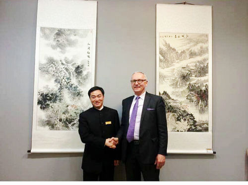 王余根先生国画作品《高山情怀》被白俄罗斯米亚斯尼科维奇议长收藏