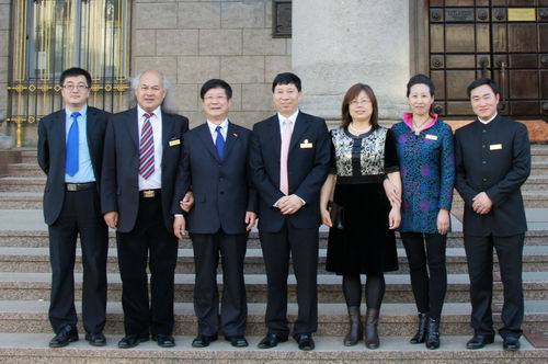 中国驻白俄罗斯大使崔启明夫妇及文化专员夏光远与刘瀚锴、王余根、吴进良、杨莉合影留念.