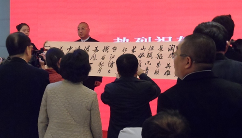许锋现场表演悬纸书法艺术