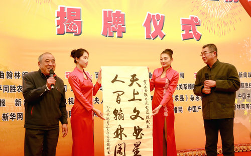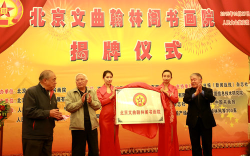 全国人大原常委江家福和北京大学法学院原副院长朱启超为北京文曲翰林阁书画院揭牌