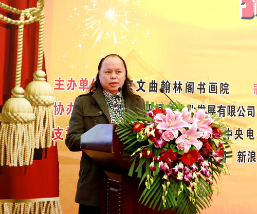 北京文曲翰林阁书画院院长齐国章在致词时说:“习近平总书记曾指出,“培育和弘扬社会主义核心价值观必须立足中华优秀传统文化”,“建设文化强国,必须立足于中国优秀传统文化的根基,汲取营养,获取力量,赋予时代精神”。中国传统文化博大精深,是中国文化软实力取之不尽、用之不竭的源泉。北京翰林阁书画院的成立,对弘扬我国书画艺术是一个良好契机,对继承和发扬传统艺术有着巨大的推动力。同时它也为各领域对书画艺术的交流提供一个广阔的空间和良好的平台。希望并相信我院的成立,能够对促进祖国书画艺术的发展和中外艺术文化的交流与融合,起到积极的推动作用。”