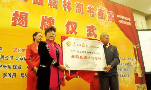 中国产业经济信息网财经频道讯(记者:许顺喜 摄影:刘艳丽)2015年10月27日下午3时许,北京文曲翰林阁书画院揭牌仪式暨人民日报《新闻战线》杂志社向北京文曲翰林阁书画院授予“战略合作伙伴单位”仪式,在北京人民大会堂宾馆隆重举行。