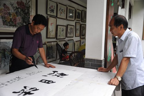 和朋友有幸在成都见到了我国著名画家邵仲节先生,并又在位于巴金纪念馆的成都锦水书画院、邵仲节牡丹研究会里结识了该院院长李斯模先生,通过一天时间的学 习欣赏,李斯模先生给我们留下了深刻的印象,他不但画山水、花鸟,书法作品也是有他独特的艺术风格,所有书画作品看后让人耳目一新。