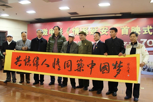 肖国清在国家行政学院创作的作品,并与邓小平饰演者段炼等合影