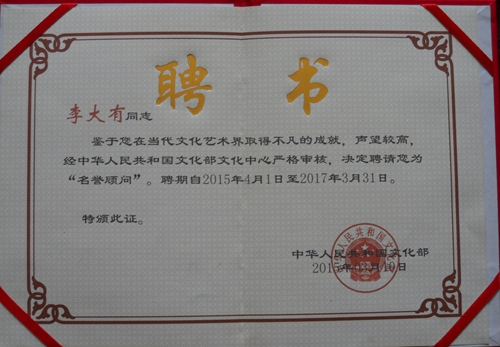 李大有:吉林省书法家协会会员,吉林市老年书画研究会副会长,中国甲骨文书法艺术研究会会员。
