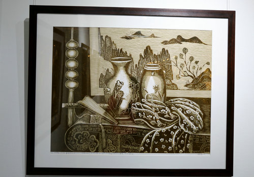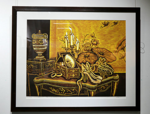 在本次展览中,我国著名画家沈春霞的多件版画作品应邀入展。可以说内容丰富,形式多样,贴近生活,表现出经典绘画与当代艺术的有机融合,具有一定的空灵感和想象力,给人们以无限的遐想空间。