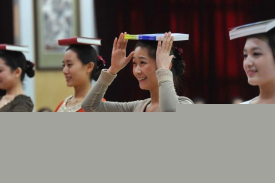 组图:头顶书本练身姿