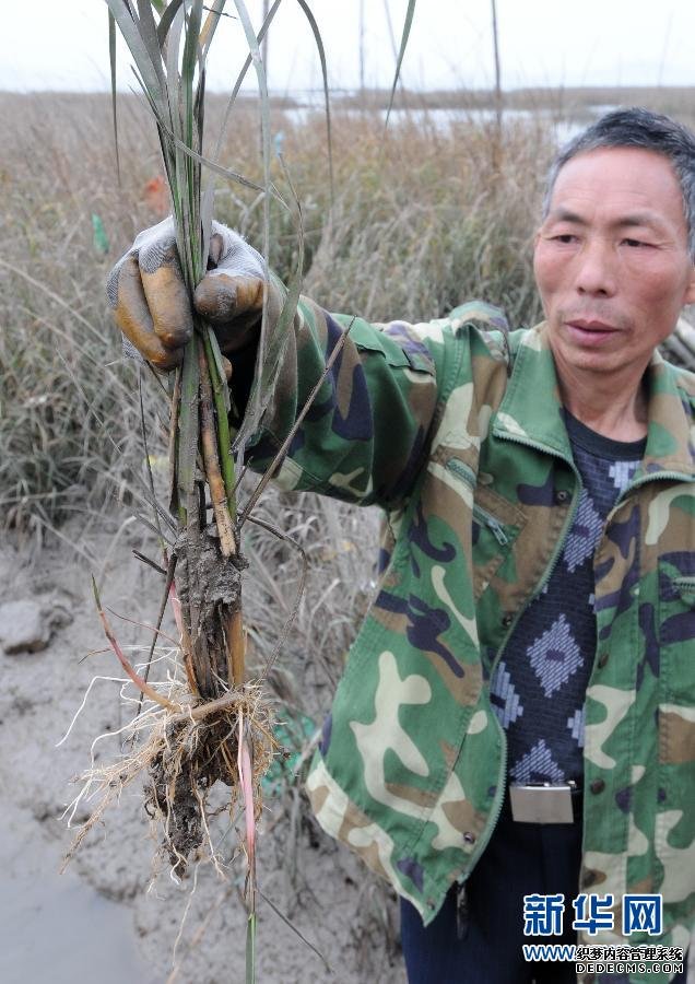 2月14日,福建省宁德市飞鸾镇梅田村村民周元弟在展示根系发达、穿透力极强的大米草。为了保护海堤,发展沿海养殖业,地处闽东沿海的福建省宁德市于1980年从美国引进了多年生草本植物大米草。然而,大米草引进后迅速蔓延和疯长,不仅蚕食了闽东沿海的滩涂,造成海洋环境污染,而且导致沿海滩涂物种大量减少。有关专家认为,大米草祸害闽东沿海,凸显我国外来生物引进、监管机制存在着缺失。新华社记者 林善传 摄