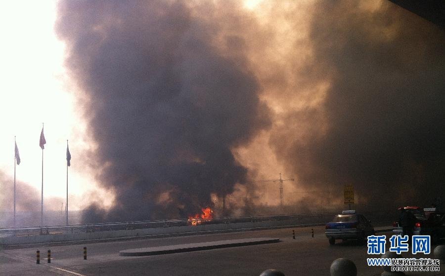 2月21日,沈阳市桃仙国际机场火灾现场浓烟滚滚(手机拍摄)。
